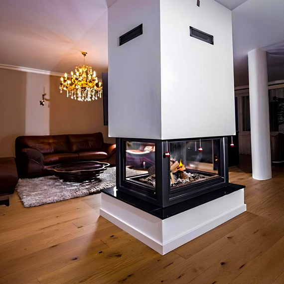 Dört bir yandan görülebilen yapısıyla tüm odanın atmosferini değiştiren bu şömine modeli, evinize modern ve sofistike bir dokunuş katar. Hem estetik bir odak noktası oluşturur hem de her açıdan mükemmel bir şömine keyfi yaşatır. Ferah ve şık bir ortam yaratmak için idealdir.