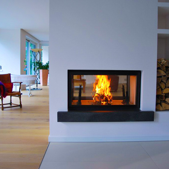 İki cepheden de görülebilen yapısıyla mekanlar arasında şık bir geçiş oluşturan bu model, iki alanı birbirine bağlayan etkileyici bir odak noktasıdır. Özel cam panelleri ile ateşin güzelliğini her iki yönden de izleyebilir, hem salon hem de yemek odası gibi alanlarda bütünlük sağlayabilirsiniz.